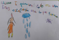 En clase hemos hablado muchas veces sobre la sequía, la necesidad de lluvia y que no hay que malgastar el agua. Por eso, ahora que por fin llueve, l@s niñ@s han escrito estas "cartas" a la lluvia: